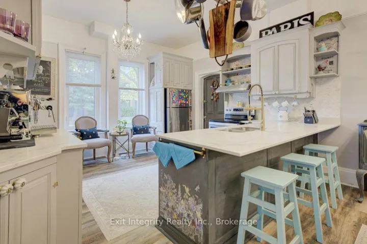 Nestled on a quiet, tree-lined street in the heart of Kitcheners vibrant East Downtown core, this distinguished century home blends timeless charm with everyday convenience. Just a few steps from Centre in the Square and the array of downtown amenities, this elegant two-storey residence offers a rare opportunity to enjoy the tranquility of a mature neighbourhood while remaining connected to the citys cultural and commercial pulse. Thoughtfully maintained, the home features three spacious bedrooms and two well-appointed bathrooms, each space radiating warmth and character. The main floor is a welcoming haven, where soaring 10 ft. ceilings and abundant natural light accentuate the home’s graceful proportions. A spacious eat-in kitchen invites family gatherings, while the living and dining rooms offer an ideal setting for both entertaining and quiet reflection. A cozy porch adds a serene retreat, perfect for morning coffee or afternoon reading. Upstairs, three generously sized bedrooms and a family-sized bathroom offer comfort and privacy. The lower level extends the homes functionality with a three-piece bath, laundry area, dedicated office space, and ample storagean adaptable space ready to be tailored to your needs. Additional highlights include the updated staircase, newer furnace and brand new central air conditioning (2025), updated roof, freshly painted interiors, gorgeous landscaping (awarded yearly by the “Kitchener in Bloom” Program), excellent curb appeal, a garden shed, and parking for several vehicles. Rich in character and ideally located, this inviting home effortlessly combines the elegance of a bygone era with the convenience of modern livingtruly an ideal place to call home.