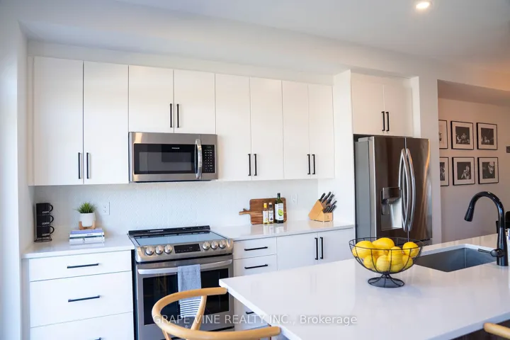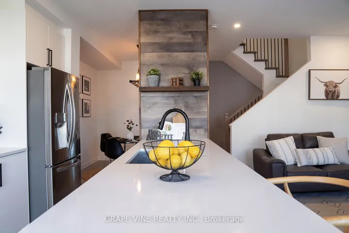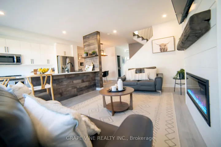 +"PublicRemarks": "Move-in ready! Welcome to this beautiful, newly built (2021) and upgraded 3 bedroom contemporary freehold townhome showcasing over $60,000 in premium upgrades. Enjoy high-end flooring throughout, including the finished basement, and a bright, open-concept layout perfect for modern living. The chef's kitchen features quartz countertops, an oversized island, sleek backsplash, and stainless steel appliances-ideal for entertaining. The living room boasts large windows and a custom gas fireplace with a rustic beam mantel and stylish board-and-batten detail. Upstairs, the primary suite offers a walk-in closet and spa-inspired ensuite, while two additional south-facing bedrooms share a beautifully upgraded full bath. Additional highlights include quartz counters in all baths, pot lights, California shutters, custom blinds, iron spindle staircase, upgraded lighting, and more. Backing onto single-family homes and steps from schools, parks, transit, shopping, and the Minto Rec Centre, this stylish, sun-filled home in Quinn's Pointe/Half Moon Bay is the perfect blend of comfort and sophistication."