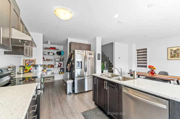 +"PublicRemarks": "Stunning end-unit townhouse offering over 1,700 sq ft of beautifully designed living space that perfectly blends comfort, style, and functionality. The main floor features an open-concept layout with a spacious living and dining area adorned with zebra curtains, creating a warm and inviting atmosphere for both everyday living and entertaining guests. The upgraded kitchen showcases high-end stainless steel appliances, elegant cabinetry, a large pantry for extra storage, and a modern layout ideal for any home chef. Upstairs, you'll find three generous bedrooms, including two with walk-in closets and a luxurious master suite with a private 3-piece ensuite. The large windows throughout the home allow plenty of natural light, enhancing the bright and airy feel. The unfinished walkout basement provides ample storage space and opens directly to school grounds, offering a peaceful and scenic view with no rear neighbors. Located in a highly desirable area, this home is within walking distance to schools, plazas, and a community center, while being just minutes from parks, trails, and St. Marys General Hospital. With excellent transit access only an 8-minute walk to the nearest bus stop and situated in a rapidly growing community, this property offers the perfect combination of modern living, convenience, and future value."