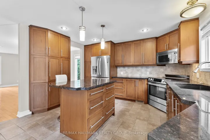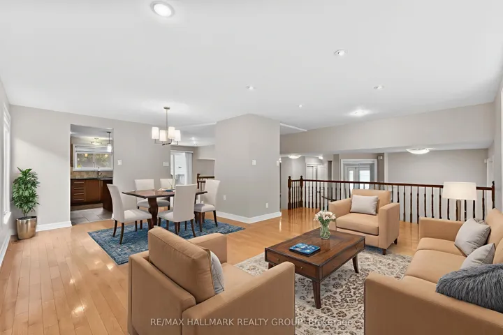 +"PublicRemarks": "Nestled on a quiet family friend street, this beautifully upgraded 4+1 bedroom, 4 bathroom home offers three levels of living space with tasteful updates throughout. The exterior offers mature cedar hedges, sprawling lawns, rear patio deck for entertainment, decorative interlock hardscaping, and parking for 4 in the surfaced laneway plus double car garage. The foyer greets you with immediate access to closets, a convenient powder room, and the double car garage. The formal living and dining rooms are spacious, filled with natural light, and offer hardwood flooring and overhead pot lights. Updated kitchen boasts granite counters, tiled backsplash, abundance of cabinetry and drawers, centre island, includes the stainless steel appliances, and offers a secondary eating area. Off the kitchen, the open concept family room is sizeable and has custom built in shelves and cubbies anchoring the fireplace. A main-floor laundry/mudroom adds to the everyday convenience. Upstairs, the primary suite is a true retreat with both a walk-in and double closet plus a luxurious 3-piece ensuite complete with glass walk-in shower. Three additional bedrooms, all with premium hardwood flooring, are served by an updated 4-piece bathroom. The lower level is bright and airy with soaring ceilings and laminate floors. A large recreation room, games area with wet bar, additional den/home office, and a huge storage/utility room provide exceptional versatility. Located in Hunt Club in close proximity to parks, shopping, and transit! Some photos virtually staged. 24 hours irrevocable."
