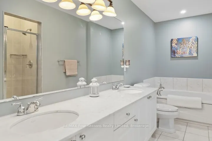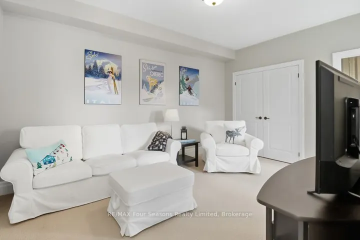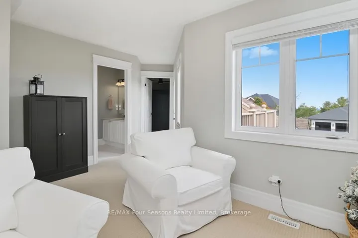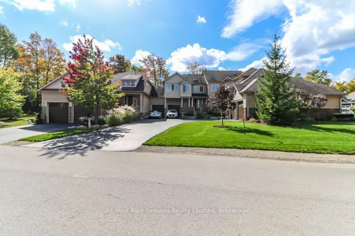+"PublicRemarks": "Stunning Townhome in the Exclusive Lora Bay Community. Experience elegant four-season living in this 5-bedroom, 4.5-bathroom townhome, perfectly situated in the prestigious enclave of Lora Bay. With Georgian Bay views, a double-car garage with EV charging outlet, and flexible living spaces, this coveted East Ridge villa is ideal for active retirees, year-round residents, or weekenders seeking a retreat in a vibrant community. The open-concept main floor living and dining space features a stone surround gas fireplace, wood floors, new pot lights (2025) and a spacious kitchen with breakfast bar. Sliding glass doors from living room opens onto a private back patio that blends seamlessly into a wooded setting backing onto the Georgian Trail. A main-floor bedroom with 4-piece ensuite with soaker tub and walk-in shower, currently used as a den, offers versatility for main floor living. Upstairs features the spacious primary suite with a luxurious 5-piece ensuite, two additional guest bedrooms, cozy sitting area, a private balcony with spectacular sunrise views of Georgian Bay. The finished lower level provides a recreation area, guest bedroom, and full 4 pc bath. New energy efficient 2-stage Furnace and Thermostat (2023), Air Conditioner (2024), Water Heater Owned (2023), Pot lights, under cabinet lighting and dimmer switches throughout (2025), Freshly painted throughout (2025), Roof (2025), Driveway resurfacing (2025), Paver stone steps to covered front porch (2025). Residents of Lora Bay enjoy exclusive amenities: clubhouse, restaurant, fitness center, two private beaches, park and endless trails. Close to golf, skiing, beaches, parks, trails and Thornbury shopping, restaurants and downtown amenities, this home offers the perfect balance of elegance, recreation, and community."