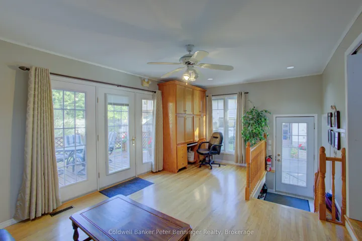 Attractive and well maintained updated bungalow in Tara. Main floor living featuring updated kitchen, living room with gas fireplace, den/office, 2 bedrooms, 2 full bathrooms and laundry. Walkout to large attached deck with covered gazebo. Basement is partially finished featuring large rec room with cozy gas stove and with potential for 3rd bedroom. Private yard is partially fenced. Carport and large paved driveway. In addition there is a detached 18′ x 34′ garage/workshop, it is insulated and heated with natural gas. Also 2 smaller garden sheds.