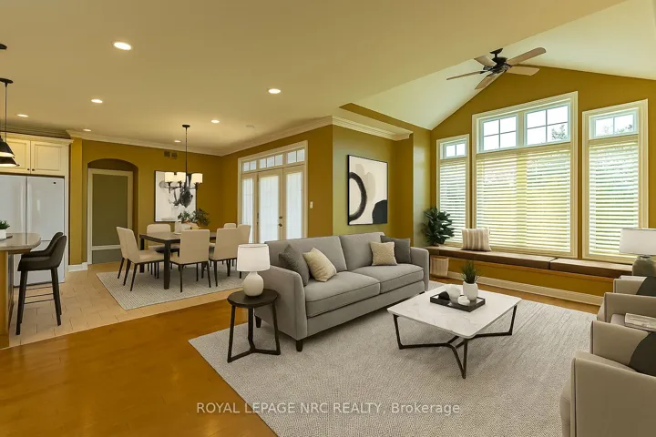 Luxury living awaits at 6 Muirfield Trail, nestled in Welland’s prestigious Highlands at Hunters Pointe community. This custom-built bungalow offers over 2,700 sq. ft. of thoughtfully designed living space, showcasing premium finishes and timeless craftsmanship throughout.Step inside to discover an inviting open-concept main floor featuring soaring vaulted ceilings, gleaming hardwood floors, and a cozy gas fireplace-perfect for both entertaining and everyday comfort. The chef’s kitchen boasts granite countertops, abundant cabinetry, and direct access to a raised deck where you can unwind or dine al fresco.The elegant primary suite offers a peaceful retreat with dual closets, a spa-inspired ensuite, and private deck access. An additional main-floor bedroom and bathroom further enhance one-level living and create flexibility for guests or multi-generational arrangements.The bright, fully finished walkout lower level expands your living space with a spacious family room, additional bedroom, office nook, and walkout to a covered patio surrounded by landscaped greenery. With its private walkout, full bathroom, and generous layout, the lower level offers exceptional potential for a two-family home, separate caregiver space, or a fully functional in-law setup-ideal for those seeking added privacy or independent living options.Residents of this exclusive community enjoy access to The Highlands Clubhouse, complete with fitness facilities, social spaces, and organized activities-all within minutes of shopping, golf courses, restaurants, and major highways.Experience refined comfort, convenience, and a lifestyle that’s second to none at 6 Muirfield Trail.