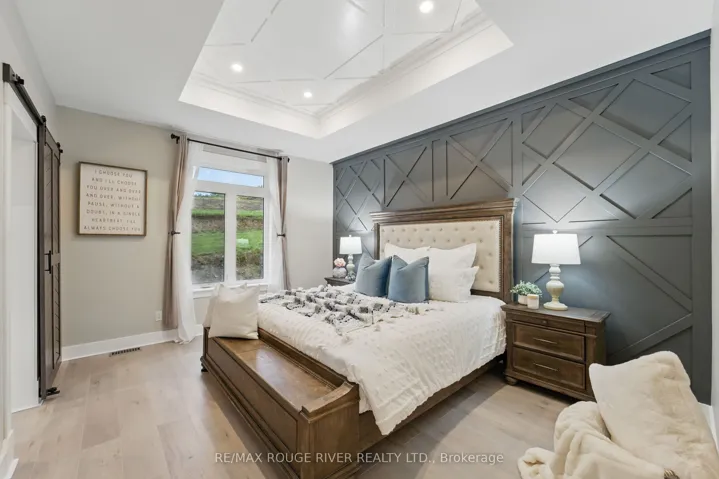 +"PublicRemarks": "Welcome to 7942 County Rd 45, a custom-built 2022 bungalow nestled on a picturesque 1-acre lot in the rolling hills of Northumberland County. This thoughtfully designed home offers elegant, open-concept living with 9-foot ceilings throughout the main floor. The bright and spacious living room features coffered ceilings and recessed lighting, creating a warm and sophisticated space. A gourmet kitchen with exceptional finishes boasting floor-to-ceiling cabinetry, high-end appliances, a large island with a breakfast bar, and pocket doors leading to a walk-in pantry with extra storage for small appliances. The dining area features a seamless indoor-outdoor flow, offering access to a large, low-maintenance composite deck and gazebo, ideal for entertaining or relaxing in nature. The primary suite is a true retreat, featuring a coffered ceiling, a feature wall, a walk-in closet with built-ins, and a spa-inspired en-suite with heated floors and a rain shower. Two additional bedrooms, a four-piece bathroom, and a convenient main-floor laundry complete the level. The finished basement offers incredible flexibility for multi-generational living or an in-law suite. It includes a spacious recreation/media room, a potential kitchen area with plumbing rough-ins, three bedrooms (one of which serves as an office), and a stylish four-piece bath. The attached garage features 15-foot ceilings and extra storage space, perfect for all your toys. Additional features include a propane furnace, heat pump (AC), HRV system, complete water filtration, well pump, two electrical panels, and a sump pump. This turnkey home combines upscale country living with thoughtful design and functionality, just a short drive to town amenities. Don't miss your chance to own this incredible property!"