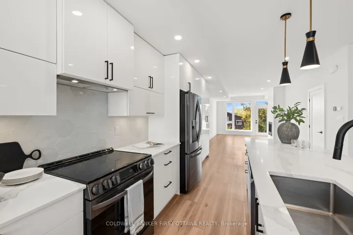 +"PublicRemarks": "Welcome to this contemporary, 2023 built home located in the heart of Centretown West, steps from Little Italy, Dows Lake/Rideau Canal & downtown. Offering 3 beds, 3 baths & a open concept layout, this gem blends style, convenience & functionality in one of Ottawa's most vibrant communities. Enter through the expansive foyer & ascend the hardwood stairs w/ black spindles to the bright main lvl feat. front dbl closets & sun filled design. The stunning white kitchen impresses w/ quartz counters, soft-close cabinetry, black fixtures & all LG SS appliances (2023) incl. Thin Q fridge w/ ice/water, glass top stove w/ built-in hood fan, dishwasher & Hisense bev./wine fridge. Enjoy a walk-in pantry, hidden appl cove, pull-out storage & a 2-sided island w/ deep sink, breakfast bar & pendant lighting. The living area boasts a gas FP, large windows & access to the composite balcony w/ gas BBQ hookup, perfect for entertaining. The dining area overlooks quiet Lebreton St. & feat. a chic light fixture & embossed focal wall. A 2pc bath completes this lvl w/ showstopper floor tile, wallpaper accent & floating vanity. Upstairs, the laundry incl. LG Thin Q stacked washer/dryer, shelving & sink (so convenient). The primary suite offers a flr to ceiling window, WIC w/ lighting & shelving & a 4pc ensuite feat. a rain shower, double floating vanity & Euro Tile finishes. 2 add'l beds incl. dbl sliding closets w/ built-in shelving & modern lighting. The main 4pc bath feat. a tub/shower combo, soft-close vanity & oversized grey tiles. Exterior highlights incl. stucco & aluminum siding, artificial grass, rear parking & basement storage access w/ on-demand hot water. Enjoy walkable access to Dow's Lake, Rideau Canal, Experimental Farm, Future Civic Campus (TOH), restaurants, parks, LRT (Pimisi/Bayview) & Le Breton Flats. Quick access to downtown, westboro, hintonburg & the glebe. Close to Carleton U, UOttawa, schools & Hwy 417, this home truly delivers modern living in a prime urban setting!"