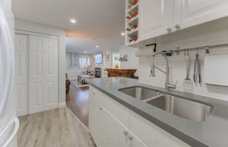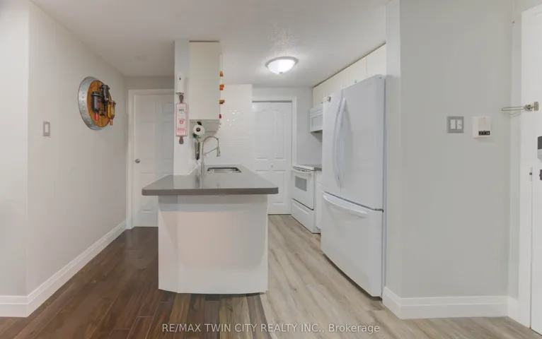 +"PublicRemarks": "Step into this beautifully renovated 2-bedroom lower-level unit, offering 810 sq. ft. of bright, modern living space. Thoughtfully updated throughout, this home features pristine ceramic tile flooring, fresh contemporary pot lighting, and a built-in electric fireplace that adds warmth and style to the living area.The kitchen boasts brand-new quartz-style countertops, a subway tile backsplash, and new appliances including a fridge and microwave (2025). Enjoy the convenience of in-suite laundry and one exclusive parking space.Ideally located with quick access to the Conestogo Expressway, public transit, schools, shopping, and restaurants - plus the Grand River Trail system just minutes away for those who love the outdoors.Whether you're an empty nester, a first or second-time home buyer, or a savvy investor, this bright, turnkey property offers incredible value and low-maintenance living in a fantastic location."