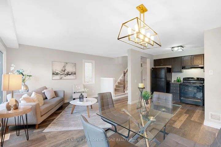 +"PublicRemarks": "Gorgeous townhouse in desirable family friendly neighbourhood. 45 Nieson St is ideally located close to schools, parks, shopping and only minutes from Hwy 401. this modern townhome Freshly painted features a stone and brick exterior, single car garage with huge Driveway for 2 additional car parking and covered porch. Step inside the chic foyer with powder room and access to the garage, and make your way into the main living space with Modern Finish Vinyl Flooring throughout. The open concept main floor features a light-filled living room and dining room with sliding patio doors leading to the backyard area. The upgraded kitchen offers stainless steel appliances, ample counterspace, modern cabinet and an L-shaped granite counter with breakfast bar and room for 4 stools. Heading upstairs, you will be pleasantly surprised to find a spacious master retreat, with a large walk-in closet, ensuite bath with walk-in shower and additionally 2 bright bedrooms, a shared bathroom, and a convenient upstairs laundry."