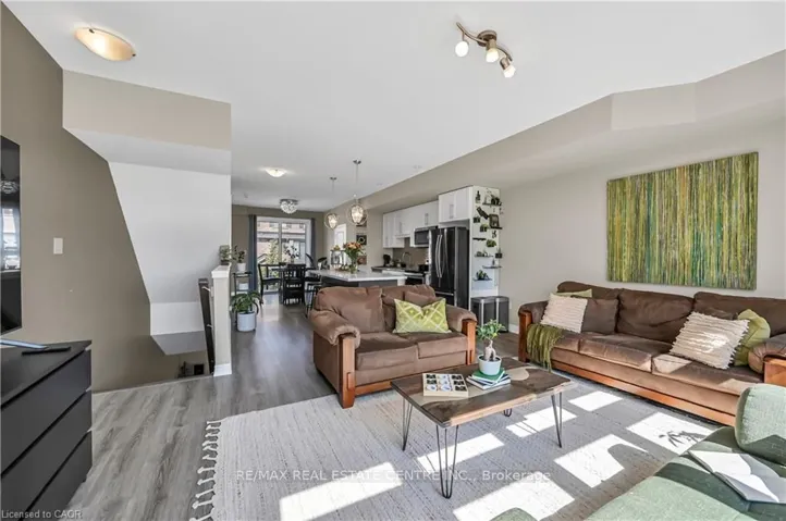 +"PublicRemarks": "SPACIOUS 3+1 BEDROOM CORNER UNIT TOWNHOUSE IN PRIME CAMBRIDGE LOCATION WITH INCOME POTENTIAL. Welcome to this bright and spacious townhouse with a 1.5 car garage and two separate entrances offering modern living, functionality, and built-in rental income. Step inside through the main entrance to a bright, open-concept living and dining area designed for entertaining and everyday living. The upgraded kitchen features abundant cabinetry, and space for a dining table if desired. Multiple walkouts enhance the flow and functionality of this inviting level. From the kitchen, step out to a large patio perfect for family gatherings or enjoying quiet evenings outdoors. The upper floor boasts a generous Primary Bedroom with a walk-in closet and private 3-piece ensuite. Two additional well-sized bedrooms share a modern3-piece bathroom. A large hallway offers versatile space ideal for a home office, study nook, or kids play area. The basement level includes its own separate entrance, laundry, a bedroom, and a 3-piece bathroom. Basement rented to AAA+ tenants for $1,050/month. This home is ideal for growing families or investors looking for space, comfort, and reliable rental income."