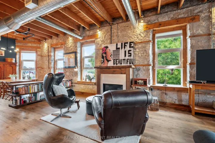 +"PublicRemarks": "This Stunning One of a Kind Corner Penthouse Loft is one of the larger Lofts in the Waterloo area and is located at the edge of the Grand River & offers Soaring 2 Story Ceilings with Oversized Windows That Flood The Home With Natural Sunlight. Original Wood Beams ,Gorgeous Stone Walls Give A New York City Vibe To this fabulous space, wood floors on main level with in floor heating, upgraded Kitchen offers Quartz Countertops, ss appliances, tile backsplash under vallance lighting & Seating For 4 At The Breakfast Bar, dining room offers custom cabinets with pantry quartz countertop & b/I wine fridge, cozy gas fireplace in Living room, Upstairs You Find A Large 2-Room Primary Suite With A Sitting Area, vaulted ceiling & custom Closet, 3 piece ensuite bath with quartz counters & large glass shower, both upper level bathrooms have heated towel racks, Spacious 2nd Bedroom, Den Area That Works Great As A Home Office. Explore downtown's delights from artisanal coffee shops to chic boutiques, restaurants shopping & cultural experiences at Gaslight District. Live music events are just steps away. Surrounded by scenic walking trails breathtaking views of the Grand River, this home invites you to enjoy luxury living at its finest & more!"