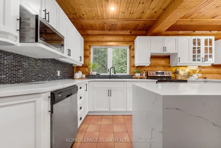 +"PublicRemarks": "Situated on a peaceful 2-acre lot in Stittsville, this custom-built detached log home is a true masterpiece of rustic elegance and modern comfort. The handcrafted wood exterior and charming front porch invite you into a world where country serenity meets contemporary luxury. Step inside to discover 4 bedrooms and 3 bathrooms spread over an expansive living space, thoughtfully designed for family living and effortless entertaining. The recently updated kitchen steals the spotlight with its gleaming stainless steel appliances, quartz countertops, tiled backsplash, elegant cabinetry, and a bright eat-in area - the perfect space to gather over morning coffee. The main floor's flowing layout connects the dining room and cozy family room, into a spacious living area, all framed by rich wood beams and sweeping views of the surrounding green space. Upstairs, new hardwood flooring guides you to four generously sized bedrooms. The primary suite is a luxurious escape featuring a large walk-in closet and a renovated ensuite adorned with modern finishes. A second full bath, complete with dual vanities and unique touches, ensures comfort for everyone. The basement offers endless flexibility - a perfect spot for a home theatre, gym, or games room and additional storage. Outside, unwind in your private oasis with a newly installed pool, relaxing hot tub, and sprawling lawn - the ideal backdrop for summer gatherings. Year-round comfort is ensured with a radiant heating system with a high efficiency boiler. A detached 2-car log garage provides ample space for vehicles, tools, and outdoor gear. A rare blend of craftsmanship, comfort, and charm - this log home redefines rural luxury just minutes from the heart of Stittsville. 24 hour Irrevocable."