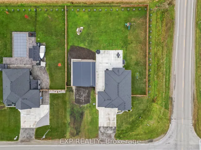 +"PublicRemarks": "Set on an almost three-quarter acre lot just minutes from Strathroy, this remarkable property showcases a brand new 30x40 ft heated and air-conditioned shop with 13-foot ceilings, a large covered patio, matching house siding, and a steel roof designed for lasting durability. Built beside the home to connect seamlessly with the massive concrete patio, it creates a functional outdoor living space perfect for entertaining, relaxing, or watching sunsets over the open fields that provide full privacy through the summer and fall. The property is fully fenced with privacy trees already planted, features a gas line for the barbecue, and offers both a covered front and back porch for year-round enjoyment. Inside, the home combines craftsmanship and comfort with 10-foot ceilings in the entry, a vaulted living room anchored by a stone gas fireplace, and engineered hardwood throughout. The kitchen includes a quartz backsplash, pot filler, extra large island, and wine fridge, while transom windows, 9-foot bedroom ceilings, and a tray ceiling in the primary suite add architectural character. The primary wing features a luxurious ensuite with a soaker tub and a spacious walk-in closet, privately tucked away from the main living areas. The oversized three-car heated garage is equipped with a gas heater, and the basement offers exceptional versatility with two large bedrooms, a full bath, rough-in for a bar or second kitchen, and a conduit for a projector. Additional details include a generator hook-up, exterior security camera system, soffit outlets for Christmas lights, and a large mudroom with custom built-ins, quartz bench top, and kick-close drawers. The home runs on natural gas and well water with a reverse osmosis system, and Bell Fibe Internet and TV provide modern connectivity. Located on a country road with a dead-end street nearby for walking and biking, this home is only five minutes to Strathroy and thirty minutes to London."