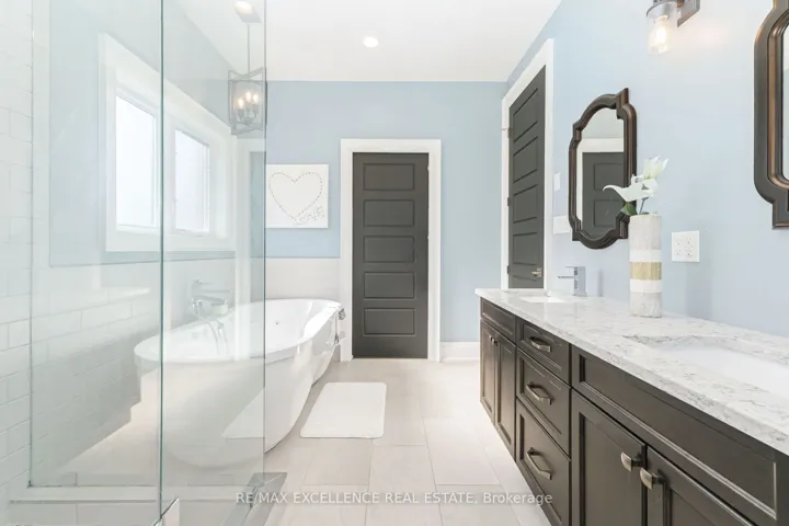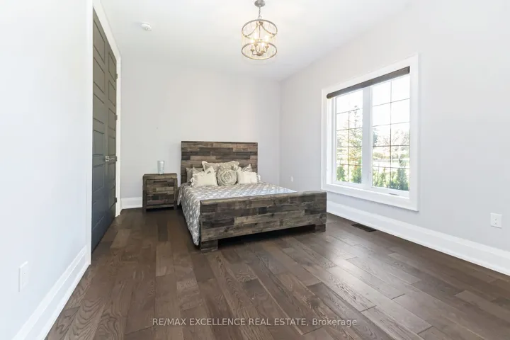 Welcome to this custom-built 5100+ Sqft luxury home set on a beautifully landscaped 1.22-acre property, just 10 minutes from Highway 401. This stunning residence offers exceptional craftsmanship and modern conveniences throughout.Enjoy the dream garage-a heated, insulated 1,355 sq. ft. four-bay (five-car) space with 9’x9′ doors and basement access. The outdoor living space is equally impressive, featuring a 360 sq. ft. covered deck, over 1,200 sq. ft. of stamped concrete, and a 20’x40′ LED-lit pool (installed only 2 years ago) surrounded by professional landscaping, fencing, and retaining walls.Inside, you’ll find 9′ ceilings, 8′ doors, engineered hardwood floors, quartz countertops, and two gas fireplaces. Smart home technology includes wireless control of lighting, garage doors, irrigation, and exterior pot lights. The Rain Bird irrigation system covers the entire property, including across the sidewalk, while an invisible fence provides safety for pets.This home truly offers it all-style, functionality, and comfort-ready for its next discerning owner.