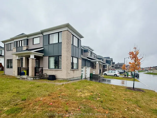 +"PublicRemarks": "Available January 1, 2026. Welcome to 990 Fameflower Drive - this "Pristine Corner" model offers approximately 2,200 sq.ft. of elegant living space. This beautifully upgraded corner townhome showcases exceptional design and craftsmanship throughout. Featuring 9-ft ceilings and hardwood flooring on the main level, the home offers a bright and airy open-concept layout with expansive windows that fill every room with natural light. The chef-inspired kitchen is equipped with quartz countertops, a large island with breakfast bar, stainless steel appliances, and abundant cabinetry for storage. A convenient main-floor den provides the perfect space for a home office or can serve as a fourth bedroom. Upstairs, you'll find three spacious bedrooms, including a primary retreat with multiple windows, a double-sink ensuite, and an upgraded glass shower. The upper hallway features hardwood flooring for a sleek look and easy maintenance, while the bedrooms are finished with premium carpeting for added comfort. The laundry room is also conveniently located upstairs. The finished basement offers additional open space ideal for a recreation room, workout area, or family lounge. Located in a family-friendly neighbourhood, this home provides quick access to top-ranking schools, HWY 417, the newly opened Food Basics (just 3 minutes away), and five nearby parks, making it perfect for families and outdoor enthusiasts alike. Book your private showing today - this stunning home will not disappoint."