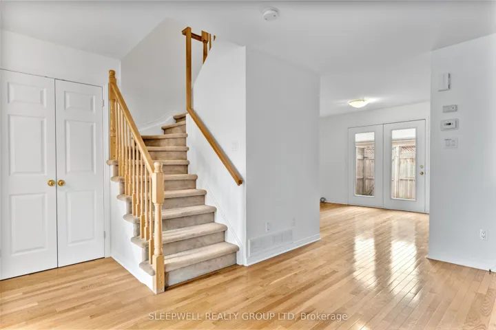 +"PublicRemarks": "Welcome to 5 Poole St, in the high-demand Nature's Grand development. This spacious, two-storey townhome features three bedrooms, two full baths and a powder room. The main level is carpet-free with hardwood floors in the living room and neutral tile in the breakfast and kitchen. The kitchen comes complete with upgraded, full-sized stainless steel appliances, and a breakfast bar - perfect for entertaining guests and additional seating. Plenty of large windows that allow natural light to fill the space. Extra storage and living space can be found in the unfinished basement, ready for you to make it your own! This beautiful townhome is located in a family-friendly, amenity rich neighbourhood, walking distance to parks, schools, trails, and easy eccess to shopping, major highway, and much more!"