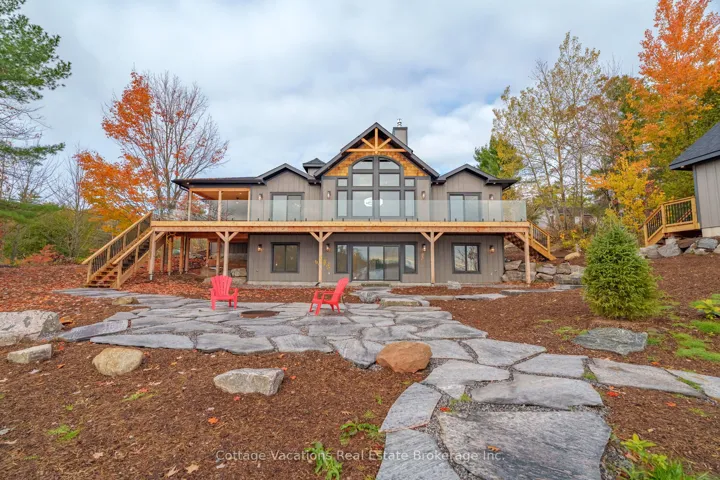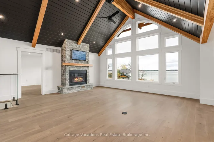 Welcome to 1111 Lakeshore Drive, a brand-new custom-built home set on 178 feet of south-facing Lake Muskoka shoreline. Enjoy year-round living on a quiet, private bay, just minutes from downtown Gravenhurst and the Muskoka Wharf. This 4-bedroom, 3-bathroom retreat blends timeless Muskoka character with modern comfort. The main floor offers 1,415 sq. ft. of finished space featuring a grand great room with exposed Douglas Fir beams, a granite-faced propane fireplace, and floor-to-ceiling windows framing breathtaking Lake Muskoka views. The chef’s kitchen includes quartz countertops, shaker cabinetry, and a walkout to a 12′ 16′ covered porch overlooking the water. A lower level with exceptional lake views provides a bright walkout family area with space for friends & family, while the main-floor primary suite opens directly to the deck. Additional features include a 2-car attached garage, main-floor laundry, hardwood flooring, and heated floors in the basement and bathrooms.The exterior is maintenance-free, beautifully landscaped with granite and mulch, complete with a fire pit and 12′ 12′ storage shed. A fully functional 445 sq. ft. bunkie offers a 3-piece bath, electric fireplace, and private deck, perfect for guests or extended family. With southern exposure, flat terrain to the water, and a dock permit in hand, this turn-key property is ideal for boating, snowmobiling, or simply relaxing in every season.