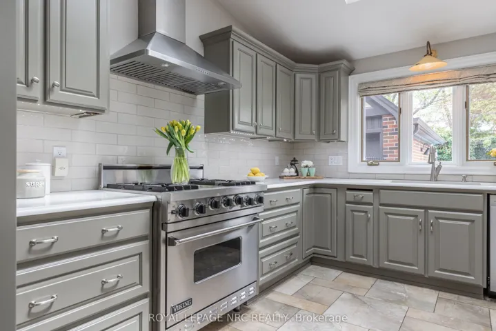 Stunning Tudour Style home situated in Old Glenridge within walking distance to the downtown core. This incredible 2 storey, 4 bedroom home offers over 4000 square feet of living space. Beautifully updated with a mix of new and old with french doors, leaded and stain glass windows, hardwood floors, and 9 ft. ceilings. Grand principal rooms with an open floor plan is perfect for family living. The formal dining room is ideal for entertaining guests along with a formal living room with fireplace and custom mantle with limestone detail. French doors separate the living room to the den with built in bookshelves. Main Floor Family Room and a fabulous Chef’s kitchen with high end stainless steel appliances, skylights, quartz countertops and large island. Primary bedroom with separate dressing room, built in cabinets and updated ensuite bath. Three other spacious bedrooms and updated 4 pc bath finish this floor. Walk out to private oasis back yard with inground heated pool, brick patio, built -in bbq, beautifully landscaped gardens with irrigation. Detached garage with pool house. Easy access to a golf club, Ridley College, Meridian Centre, PAC, restaurants and shopping.
