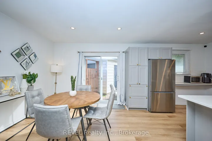 +"PublicRemarks": "Welcome to this fully updated bungalow located in a quiet family friendly desirable north end location on a quiet dead end Crescent, close to A+ schools, highways, Niagara College, YMCA, and more! This fully updated bungalow is move in ready, with just under 2000 sq.ft of total finished living space top to bottom, featuring an open concept design and modern contemporary décor. Modern custom kitchen with new shaker style cabinets, quartz counters, stainless steel appliances, classic subway tile backsplash with island for bonus seating. There is a family sized living room/dining combo with patio doors leading you to the large rear yard with interlock brick patio to enjoy some peace & privacy. Three spacious bedrooms on the main floor with a custom main level bath with custom ceramic tub surround. The lower level features a separate entrance from the backyard for in-law suite, or extra income possibilities if desired.. Large Recroom to fit all the families needs, gas fireplace, a 4th bedroom and a second 4 piece bath with laundry. Deep oversized detached garage with hydro, this bungalow has it all at this price point! Other features and updates include; Garage roof (2025) Double wide Asphalt driveway (2023) Luxury vinyl flooring throughout both levels (2023) Roof/Facia/Soffit/Eaves (2021) Furnace/A/C, & Windows all replaced in (2021). 200 amp service, hydro in garage. All this on a large reverse pie shape Lot with truly nothing to do but move in and enjoy!"