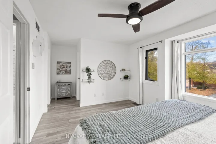 Updated three bedroom townhome backing on Mc Kinley Park in Kanata North, close to the Kanata Technology Research Park, and walking distance to shopping, restaurants! Updated kitchen with stainless steel appliances. Updated powder room and 4-piece cheater bathroom, laminate flooring throughout. Fully fenced yard. Just move in! Open concept Living/Dining room with Large picture window to gorgeous extra deep, fully fenced rear yard with large patio, gazebo and storage shed. Head upstairs to three bedrooms with an updated four piece bathroom. Primary bedroom with walk-in closet and reading nook. Finished basement features vinyl flooring and secondary storage room. Central vac is roughed in. Furnace and tankless hot water (2020), rear patio (2023), kitchen reno (2020)