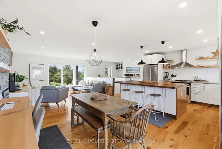 Welcome to this impeccably updated 3+1 bedroom bungalow, located less than 5 minutes from Almonte! Set on over an acre of land backing onto town greenspace, this exceptional property offers the perfect balance of peaceful and private country living and convenient access to all the amenities and charm of Almonte. The home features an open-concept layout that is both bright and functional. The stunning kitchen features an impressive butcher block island, stainless steel appliances, and generous storage and counter space. From the dining room, step outside to an expansive deck overlooking the tranquil, tree-lined property-a perfect spot for entertaining, dining, or simply enjoying the quiet beauty of the surroundings. Inside, a wood stove adds warmth and character to the living space, perfect for relaxing on cooler evenings. The kitchen, updated bathrooms, and new flooring throughout showcase impeccable craftsmanship and attention to detail. The spacious primary bedroom includes a stylish ensuite, while two good sized additional main-floor bedrooms provide ample space for family or guests. The bright, fully finished lower level offers an expansive family/ rec room, an additional bedroom, full bath, and generous storage areas-perfect for a home office, gym, or guest suite. Large windows fill the space with natural light, creating a comfortable and inviting extension of the main living area. With its modern updates, thoughtful layout, and ideal location, this home offers a rare opportunity to enjoy luxurious country-style living with all the conveniences of Almonte just moments away.