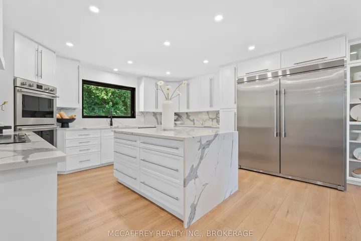 +"Inclusions": "Kitchen Aid Stainless Steel Appliances- Fridge, Dishwasher, B/In Microwave, B/In Oven, Cooktop & Hood Range. Basement Bar Fridge. All Elf's & All Window Coverings. Parking Pad, Garage Door Opener, Smart Thermostat, Water Softener Filtration, Humidifier, Heat Exchanger, Updated Pot Lights Outdoor."