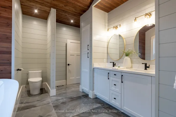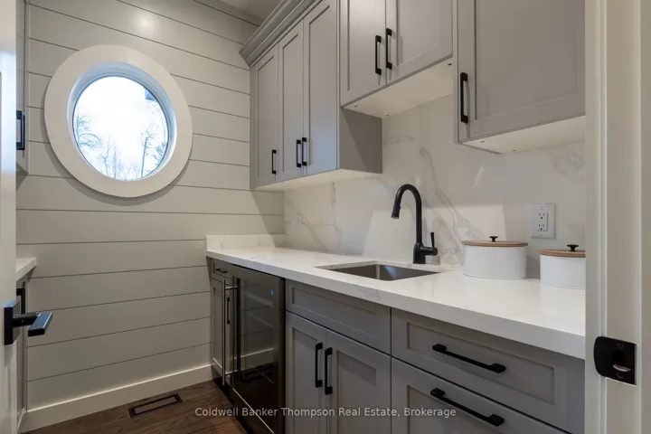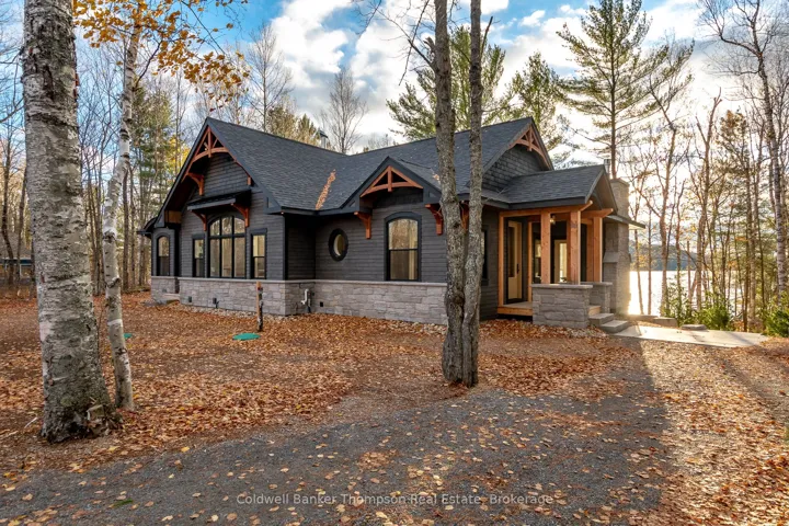 Welcome to this brand new custom-built masterpiece on the coveted shores of Lake of Bays. Set on nearly 1.5 acres with over 100 ft of desirable west-facing frontage, this exceptional property blends refined craftsmanship with the beauty of Muskoka living. Level, usable land & beautifully crafted Muskoka stone hardscaping lead to a pristine, hard-packed sand shoreline-perfect for swimming, lounging & lakeside fun. At the heart of the home is an impressive open-concept living, dining & kitchen area designed to capture breathtaking lake views and stunning sunsets. The living room features a soaring vaulted wood ceiling & striking floor-to-ceiling stone wood-burning fireplace. The designer kitchen offers a large island with extra seating, sleek induction cooktop stove & elegant quartz countertops, complemented by a convenient butler’s pantry with beverage fridge & sink. From the living room, Muskoka Room & primary suite, sliding doors open to an expansive lakeside deck with glass railings & propane BBQ hookup, ideal for dining or entertaining. The Muskoka Room is a showpiece with a beautiful stone propane fireplace & an abundance of windows framing serene views.The primary suite is a true retreat with private deck access, walk-in closet & a spa-inspired 5-pc ensuite featuring heated floors, double vanity, soaker tub & walk-in shower. The finished walkout lower level maintains the same high-end quality with in-floor heating throughout, 3 bedrooms, 2 full baths & a spacious rec room anchored by another propane fireplace. A versatile sunroom on this level can be screened in for summer evenings or kept warm by its own fireplace when cooler weather arrives, an ideal year-round gathering spot. A scenic waterfront walking trail extends beyond this property, connecting neighbouring properties along this stretch of shoreline. Whether for a morning coffee stroll or an evening walk with family, it’s a wonderful way to enjoy the natural beauty of Lake of Bays.