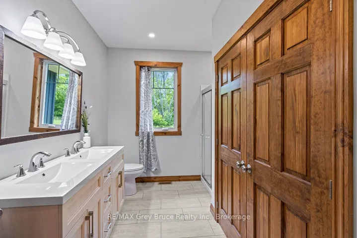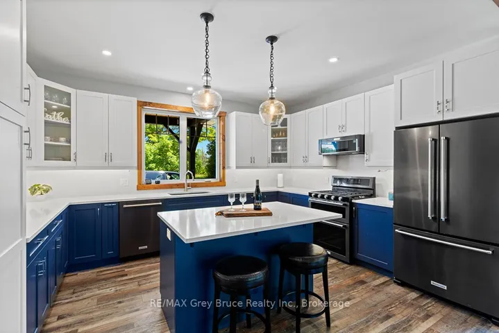 Welcome to 1379 West Road, a thoughtfully designed custom home built in 2019, set on a private 2.4-acre lot in Northern Bruce Peninsula. It features 4 bedrooms, 4 bathrooms, and over 2,100sqft. Located just 10 minutes from both the town of Lions Head and Pike Bay area. Step into the welcoming foyer with a built-in storage bench and closet, leading into an open-concept living space. The chefs kitchen features quartz countertops, custom cabinetry, and an island with a built-in appliance lift. The living room boasts a stunning floor-to-ceiling fireplace and doors leading to a large back deck, perfect for entertaining or relaxing. Three of the four spacious bedrooms include private ensuites, ideal for guests, large families or rental opportunities. The oversized attached garage (24ft by 23ft) provides ample space for vehicles, tools, and storage, making it perfect for hobbyists or year-round convenience. Enjoy nearby OFSC snowmobile trails, Bruce Trail hiking access, and easy drives to Tobermory, Bruce Peninsula National Park, and the Grotto. Whether you’re looking for a full-time residence or a retreat on the Bruce, this move-in-ready home offers a rare combination of modern design and natural beauty.