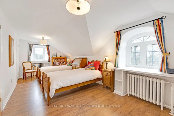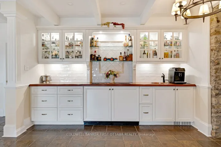 Exceptional exquisite estate with elegant century stone home on 10 pastoral acres – where luxury meets opportunity. This landmark 1840 home, fully renovated to modern luxury, offers both a prestigious lifestyle and income potential. Whether envisioned as an extended family compound, wellness retreat, boutique inn, or executive business centre, this 5,500sf, 8 bedroom, 7 bathrooms residence adapts beautifully to many purposes. Just minutes from the artisan town of Perth, the property blends historic character with refined comfort. Grand light-filled rooms feature high ceilings, deep sills and exquisite décor. The entertainment-sized Great Room impresses with a stone fireplace, granite mantle, and slate-style floors. The butler’s pantry with copper sink, beverage fridge, and full cabinetry adjoins the space – perfect for hosting or events. Formal dining room accommodates 20 guests in style, while the true gourmet kitchen dazzles with rounded granite counters, double ovens, 9ft breakfast bar, and classic AGA range framed by stained glass and chandelier lighting. Main-floor primary suite offers radiant in-floor heat, a walk-in dressing room and five-piece spa ensuite with Silestone quartz vanity, soaker tub, and walk-in shower. Three additional bedrooms on main level, two are currently used as office and den. Sunroom lounge, sitting room, ultimate laundry room and mudroom complete the main level. Upstairs are four generous bedrooms, three with ensuites and one with an attached fitness room. Second floor luxury 4-piece bath. Two single attached garages provide inside entry. Recent updates include architectural 2019-2024 roof shingles and new 2023 septic. Charmingly renovated barn serves as professional office, with heat and air conditioning. Property also has large driveshed and two paved driveways, one is circular. Set amid landscaped grounds and just five minutes from conservation trails, this stately property invites both refined living and visionary investment.
