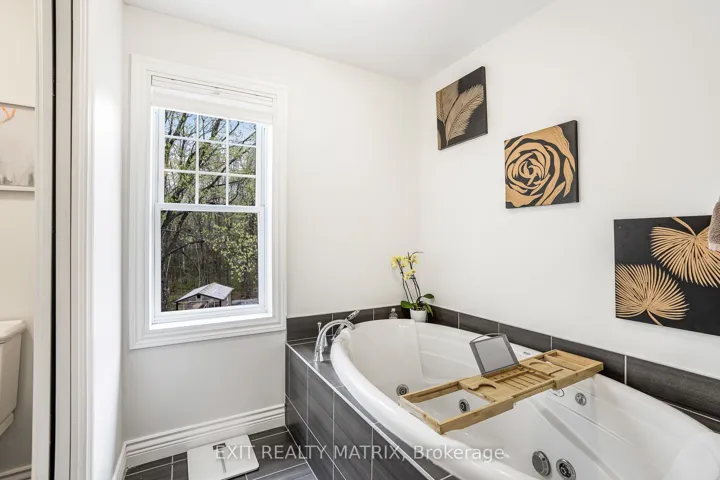 +"PublicRemarks": "Welcome to this exceptional property, situated within a private and exclusive gated community in Hawkesbury, conveniently located across from the renowned Hawkesbury Golf & Curling Club. This executive residence offers refined living and features a breathtaking 30ft waterfall on its grounds, providing a serene and enchanting atmosphere. The spacious open-concept main floor includes a chefs kitchen equipped with granite countertops, cherry wood cabinetry, and a large center island, ideal for both entertaining and culinary endeavors. A striking double-sided wood-burning fireplace enhances the warmth and charm of the living and dining areas, creating an inviting ambiance. A dedicated laundry room and a stylish partial bathroom are also conveniently located on this level. The upper level comprises three well-appointed bedrooms, two of which provide direct access to a private balcony, perfect for enjoying morning coffee or evening sunsets. The luxurious primary suite features a spa-inspired ensuite with a deep, jetted tub, an elegant tiled shower, and an oversized walk-in closet. The fully finished basement expands the living space with two additional bedrooms, including a custom professionally built home studio and office, suitable for content creators or remote professionals. Furthermore, the basement includes a custom entertainment bar area with a 72 bottle capacity. The garage offers a professional golf simulator with a 20' x 24' four-hole putting green for golf enthusiasts. The exterior of the property offers a backyard oasis featuring a covered porch leading to a relaxing hot tub under a metal gazebo, meticulously manicured landscaping, a scenic path to the impressive Rideau Falls located on the property, and a cozy firepit area, providing a private retreat for all seasons. Over 3500 sq ft of finished living space. This exceptional offering combines executive comfort, natural beauty, and a prime location."