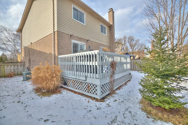 +"PublicRemarks": "Welcome to this beautifully updated 3-bedroom, 1.5-bathroom home, perfectly tucked away on a quiet, family-friendly cul-de-sac surrounded by mature trees. You'll love the peaceful setting with the convenience of schools, parks, and shopping just minutes away.Step inside to a bright, eat-in kitchen featuring a gas stove, plenty of cupboard space, and room for family meals. The open-concept living and dining area is perfect for entertaining or relaxing, with sliding doors leading to a raised deck and fully fenced backyard - an ideal spot for barbecues, playtime, or pets. A convenient powder room completes the main floor.Upstairs, you'll find three comfortable bedrooms and a modern full bathroom. The finished basement adds even more living space, complete with a large laundry area and a cozy rec room with a brick fireplace - perfect for movie nights or game days.Recent updates include a new front porch (2023), water heater (2023), central vacuum (2022), and a WETT-certified fireplace (2024)."